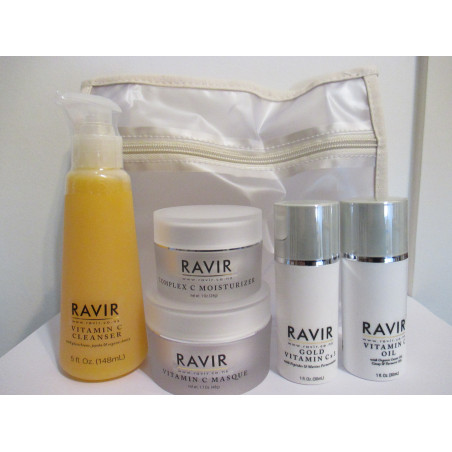 Designed to deliver unparalleled brightness, hydration, and protection, this advanced system harnesses the power of a next-generation stabilised form of Vitamin C bound to gold for enhanced bioavailability and efficacy. Paired with potent antioxidants, soothing botanicals, and marine extracts, this collection offers a multi-faceted approach to achieving radiant, youthful skin. The cleanser gently purifies while infusing skin with a potent Vitamin C/Gold/Glutathione complex, Organic Honey, and Jojoba Esters to hydrate and refresh. Follow cleansing with a serum featuring a scientifically advanced Ascorbic Acid complex, fortified with Kakadu Plum, and Coenzyme Q-10 to combat environmental stressors and support collagen synthesis. Then a luxurious oil, enriched with Cacay Oil and Turmeric, deeply nourishes and restores balance while improving skin elasticity. Finish the daily regimen with a moisturizer that delivers advanced hydration with Red Marine Algae and Picea Abies Extract, helping to even tone and calm irritation. Completing the kit is a masque infused with Kakadu Plum and Organic Honey, providing an indulgent treatment that revitalizes and enhances the skin’s natural glow.